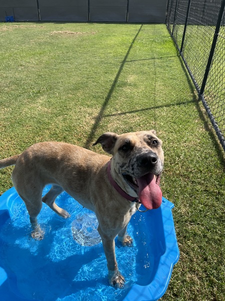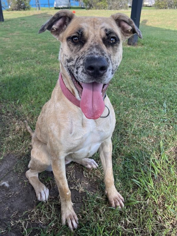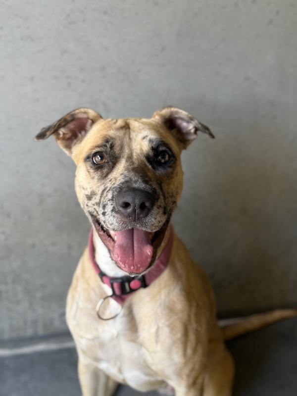 Burrata is a sweet, social girl who thrives in a loving, active home where she's included in daily family activities. She bonds easily with those around her, greeting people with a wiggly body and wagging tail.