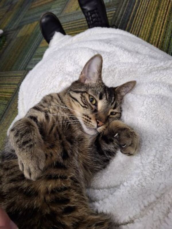 Leo knows the importance of self-care at work, always being sure to take a break when he needs it and reaching out for support (read: under chin scratches) when he's having a tough day."
