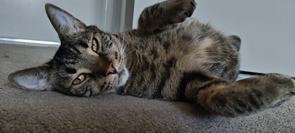 Leo is a handsome boy who's looking for a calm, understanding home where he can feel safe and loved. He'll need plenty of cosy spaces to call his own - scratch posts, cat trees, cardboard boxes, or igloos - along with access to shelves or dressers so he can perch high or hide low as he pleases. Leo can be timid at first in a new environment, so a patient adopter who understands that he may take some time to settle in will help him blossom into his affectionate, bunty self. Once comfortable, Leo is a very happy boy who is incredibly affectionate, loves gentle pats, treat paste, and all the yummy snacks he can get! He loves the company of his human family but prefers to be the only cat in the home, as we know he hasn't enjoyed living with other felines previously. A household with teens or older children who can read his body language and respect his space would suit him best. With time, love, and a peaceful space to call his own, Leo will reward his person with trust, warmth, and plenty of purrs.