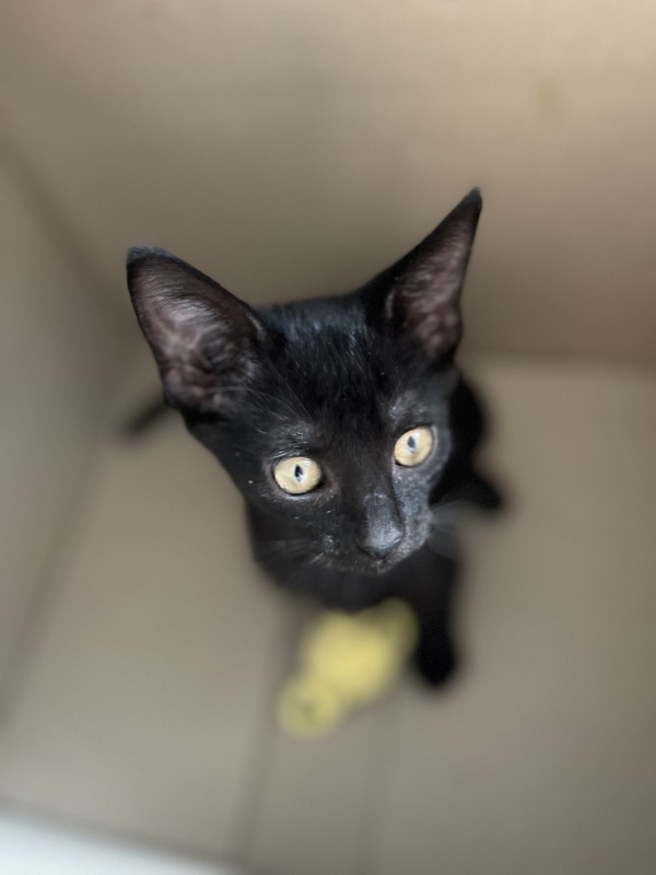 and I'm a little black kitten with a very big personality. I may look sleek and mysterious on the outside, but don't let that fool you-I'm a total goofball who loves to play, pounce, and explore every corner of the world (or at least every corner of your home).