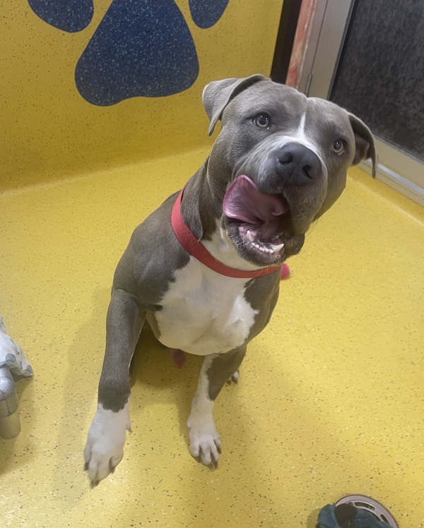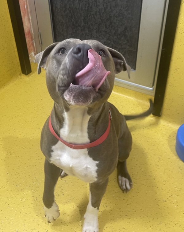 Meet our typical happy-go-lucky Staffy Rocco who is still a puppy at heart and a big-hearted goofball with zero awareness of personal space and 100% enthusiasm for life! This exuberant, friendly boy loves absolutely everyone and everything... sometimes just a little too much.