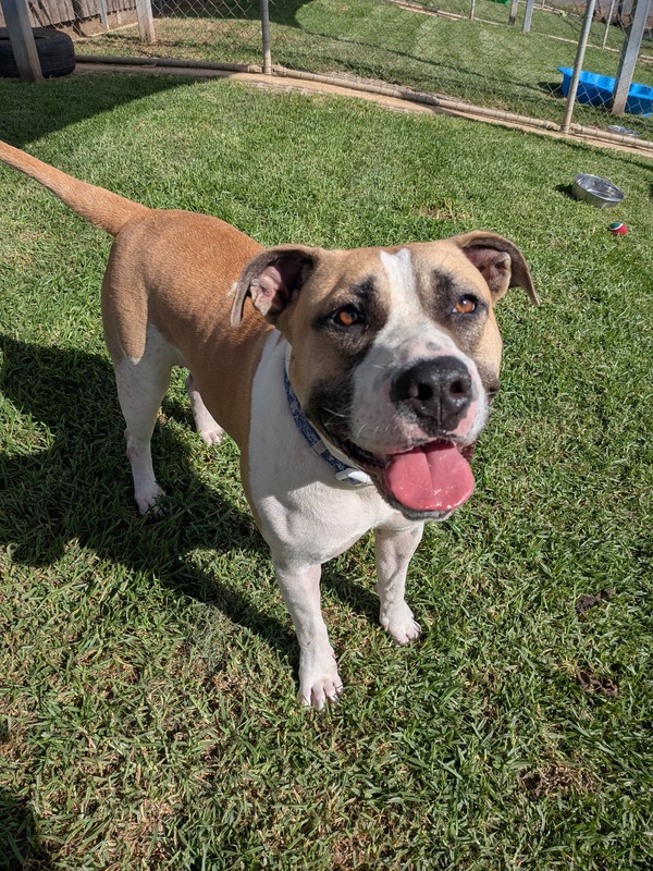 Evie is a happy, loving Staffy who fits beautifully into almost any home. She'd be thrilled to join a family with kids and would love being part of all the action. Gentle and incredibly respectful, Evie makes great choices - she doesn't jump up and has lovely manners with everyone she meets.