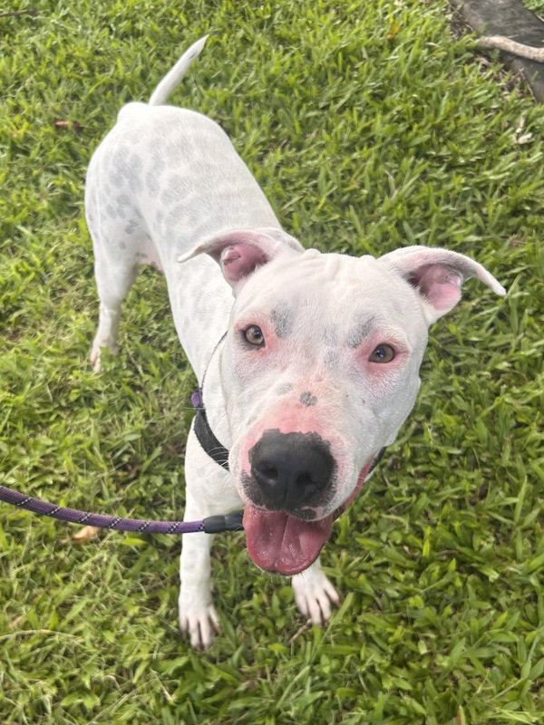 My name means blossoming friendships, sentimental memories, and everlasting love and thats exactly what I am looking for and can give to you. I am curious and loves to go on adventures. I am quite the personality loving and sweet but also can be a ball of energy with a strong whippy tail. I get along with most of the dogs in shelter, so if you have a furry friend at home I would love to meet them first to see if we can be best pals. As you can see I have quite pale skin so sun protection is a must for me when on walks and hanging in the yard doggy suncreen and shade is my friend. Apply today and come meet me and fall in love.
