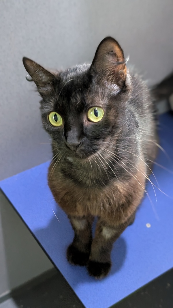 It may not be the sweetest name but I was found in a dumpster behind a Dominos and the name Domino was already taken.... So the staff thought it was appropriate. You can call be Dumpy if you like (or whatever really, I don't mind). I may have had a bad experience but I have truly bounced back and you would not know given my temperament. Though I do look like someone that has been living in a dumpster, with some time, TLC and good food I will be back to my most beautiful self in no time. I know I will be a lovely member of a family given a chance. I am an exceptionally friendly cat and would like that opportunity to be loved and live my best life. Please come and meet me and see if we are a perfect match.