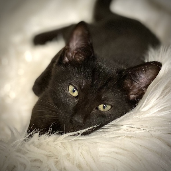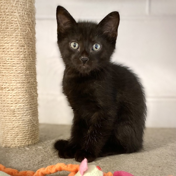 Miles is a handsome, quiet little man who is having lots of fun with his 3 siblings at the Shelter. Climbing the tall cat tower is great entertainment, as is going out into the window box to play with the toys and his siblings. There is so much to love about Miles - he'll settle down on your lap or beside you just like your own little hot water bottle. Before you know it, he'll be asleep and you'll need to stay in that position until he wakes up. Miles has the sweetest meow and he's very happy to engage in a conversation with you. He loves to purr and is very gentle. Miles has a soft, all-black coat that is an easy care short length. It's now time for Miles to find a caring home where he'll be a treasured member of the family. Notes for Miles' care are:-